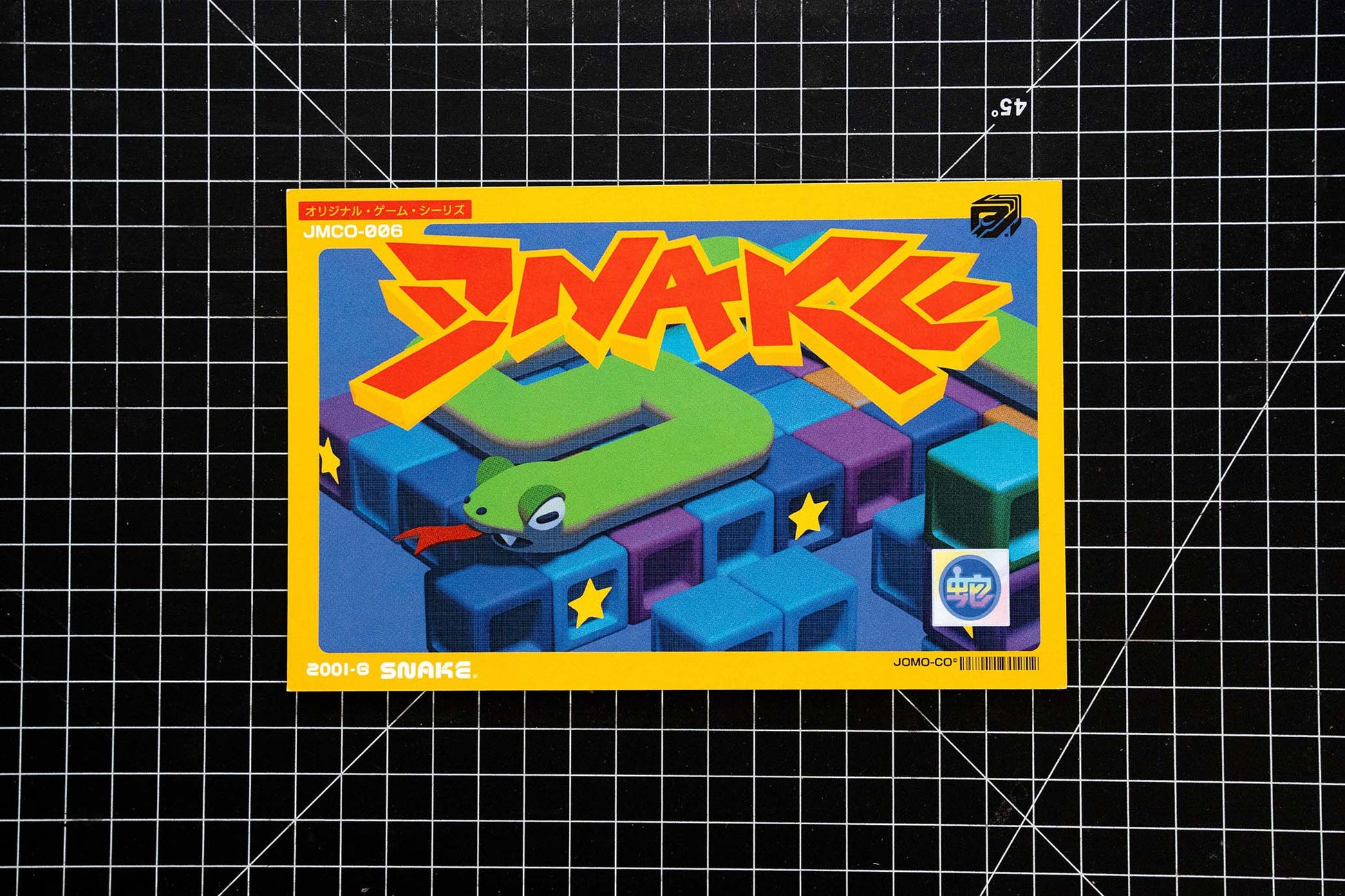 Snake postcard inspired by retro SNES cartridge art.