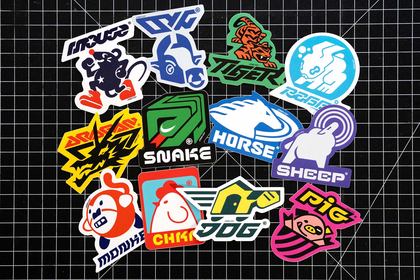 Approx. 3 x 3" stickers featuring the Zodiac Animals as Y2K inspired, street style logos, finish and texture may vary across designs.